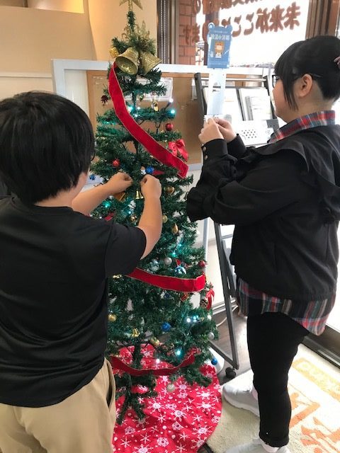 そんな気分を盛り上げるクリスマスツリーを小学部の児童たちと一緒に飾りました。