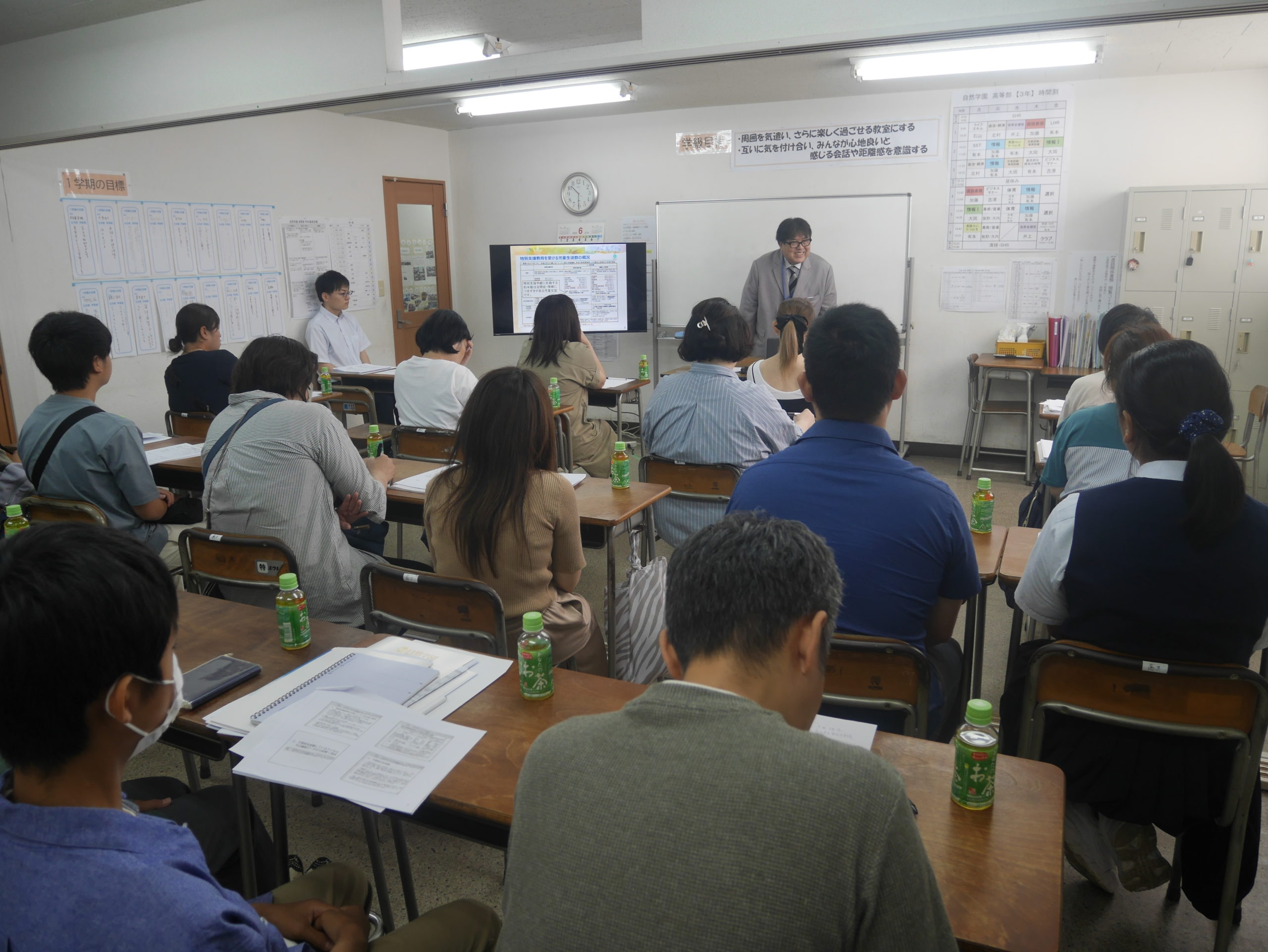 自然学園では6月14日の土曜日に、不登校や特別支援教育を必要としている人たちのための進路説明会を開催しました。当日は雨天での実施となってしまいましたが、教室が一杯になるほど多くの方にご参加いただき、盛況な説明会となりました。雨の中、来校いただいた参加者の皆様、本当にありがとうございました。
