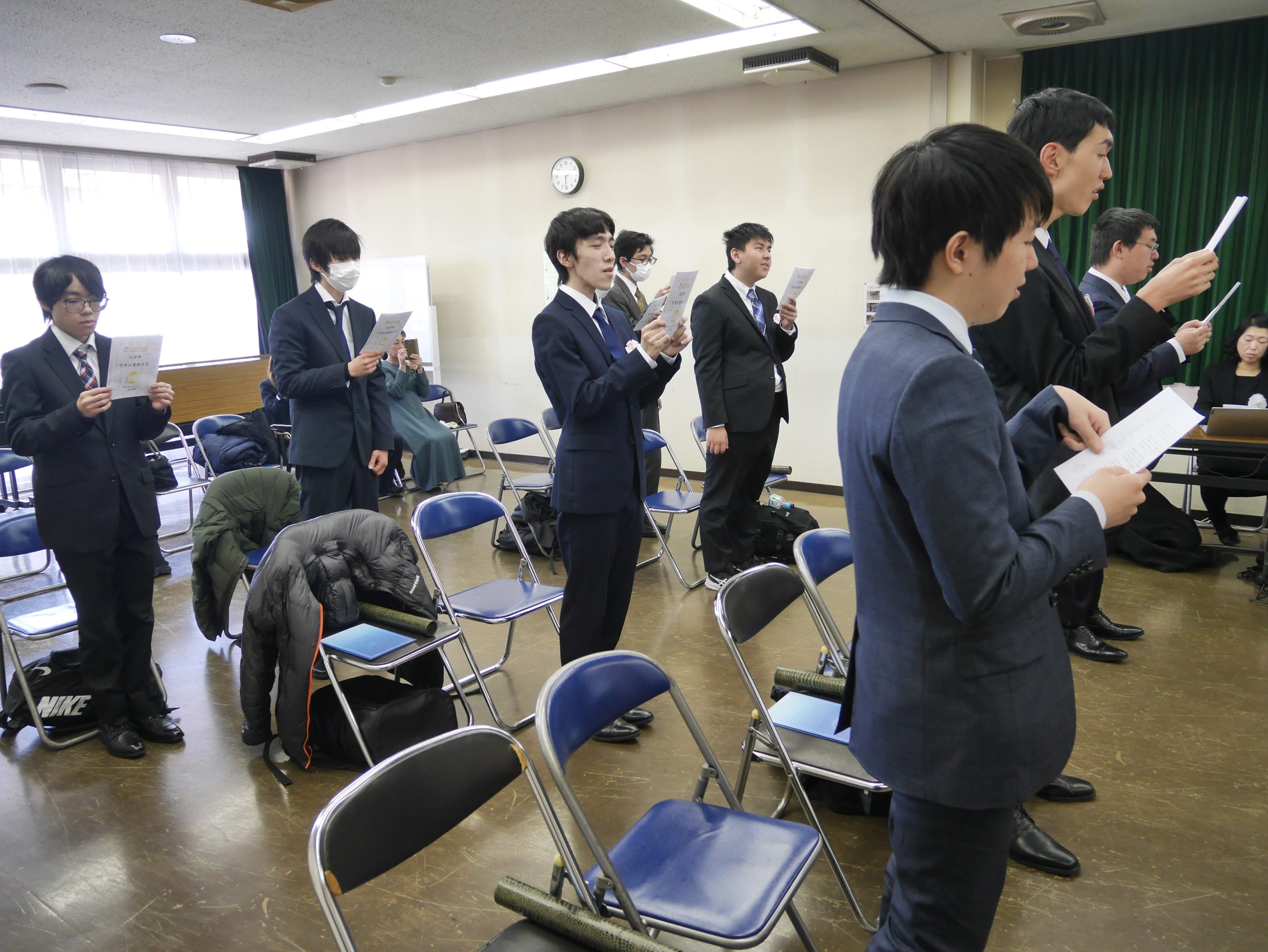 卒業生たちも一様に晴れやかな顔で、それぞれ学園で過ごした月日は違うものの、自分なりに学園生活をやり切ったという充実感に満ちていました。中には中学生の頃から塾の生徒として通っていた者もおり、立派にスーツを着こなして凛々しく卒業証書を受け取る姿を見ると、感慨深いものがありました。一方で今年度入学した生徒も堂々とお祝いの言葉を読み上げるなど、成長を感じさせてくれる場面もありました。来年度以降の大学部を担っていく、彼らの今後が楽しみになりました。