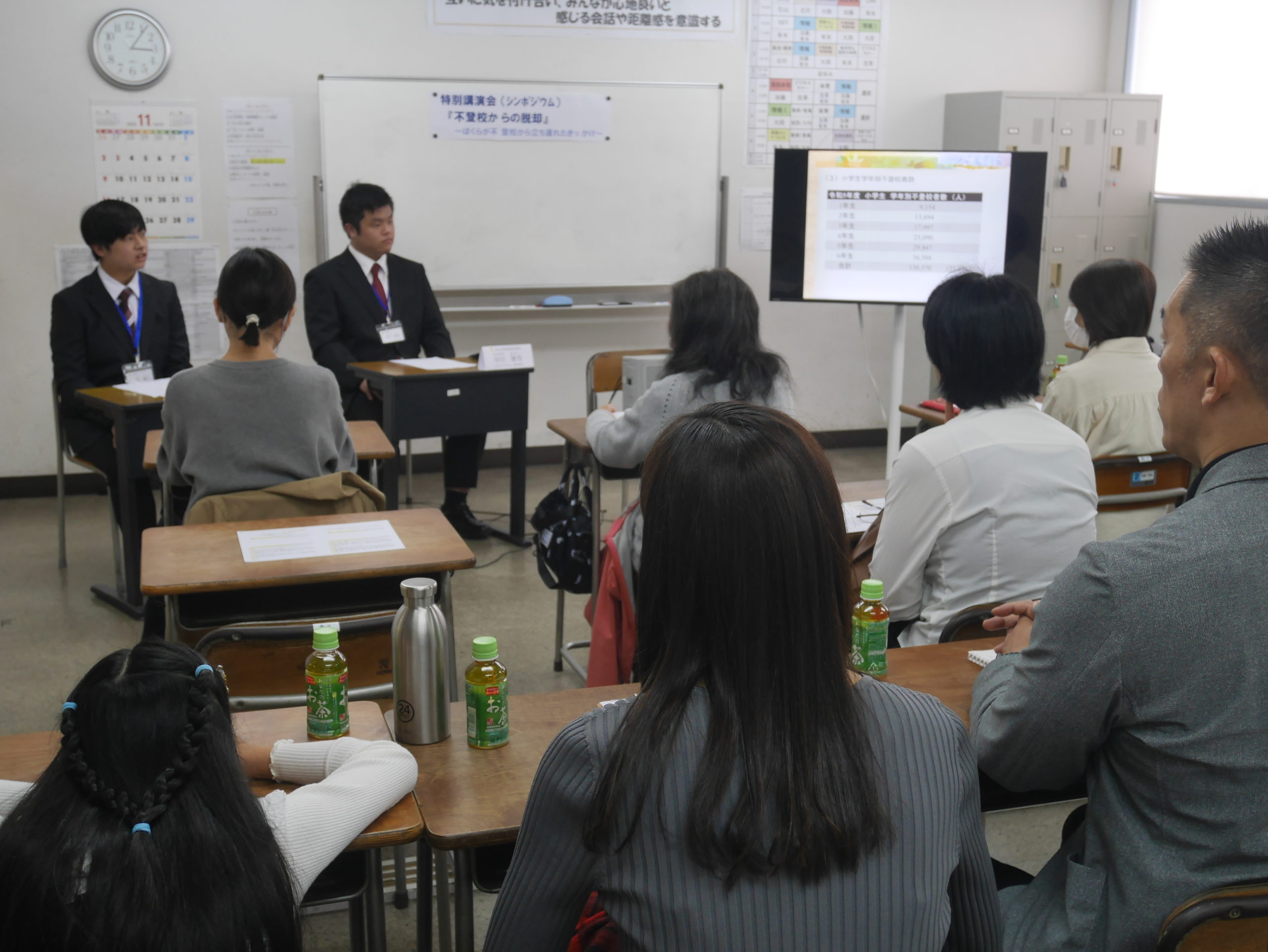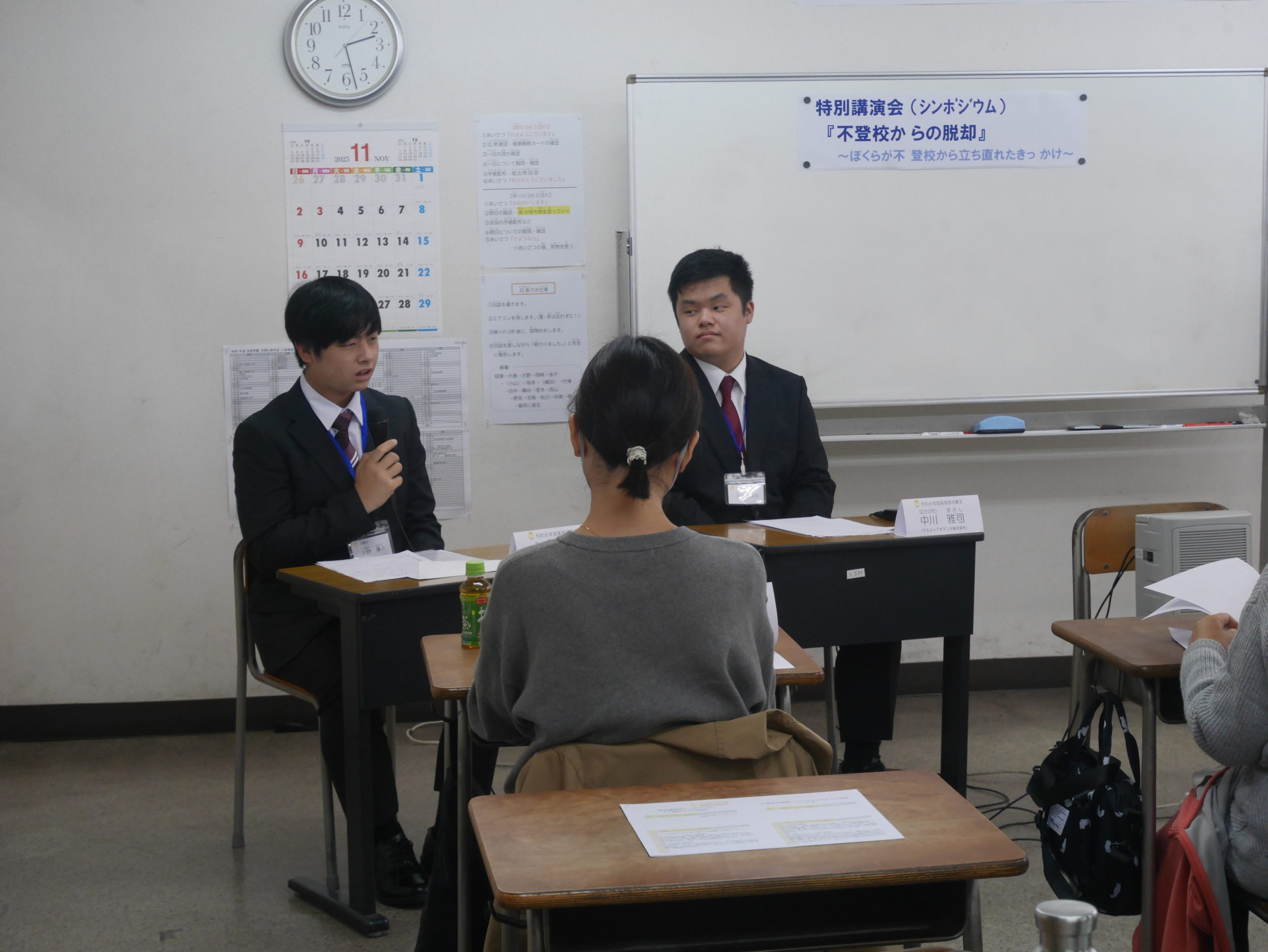 学園祭2日目の11月2日(日)は、14時から、「不登校からの脱却」をテーマとして、特別講演会シンポジウムを開催いたしました。