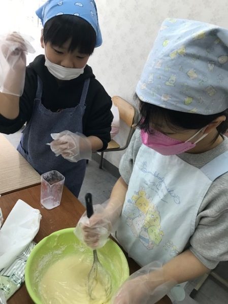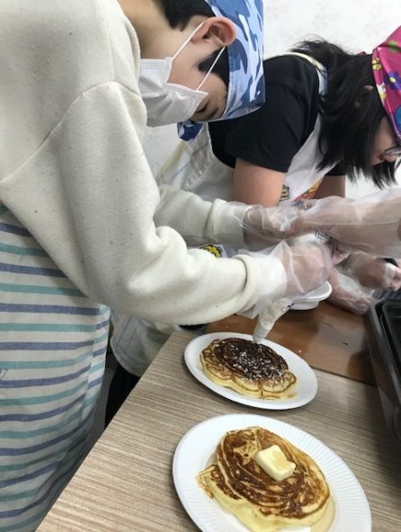 小学部は、2月14日(金)「調理実習」を行いました。今回のメニューは「パンケーキ」作りです。皆で役割分担を決め、生地をつくる人、ホットプレートで焼く人、シロップなどデコレーションする人とみんなで協力して調理を進めました。