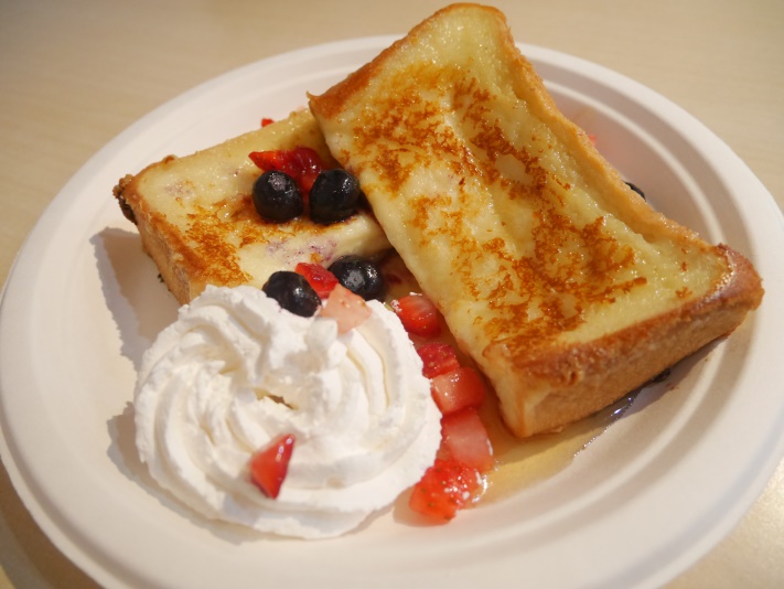 メープルシロップをたっぷりかけて食べる「フレンチトースト」は高級ホテル並みのブレックファーストです。